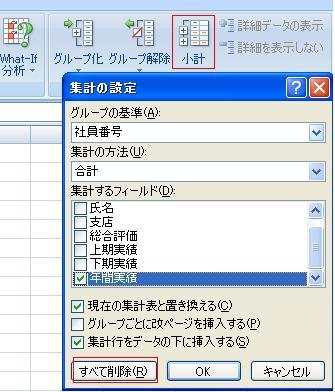エクセル2007で集計したものの解除の方法を教えてください。よろしく